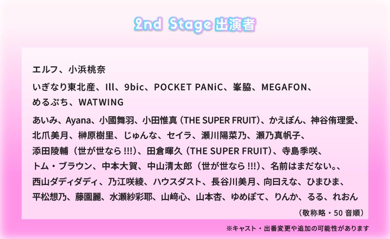 ※キャスト・出演変更や追加の可能性がありますので、随時シンデレラフェス公式サイトをご確認ください。