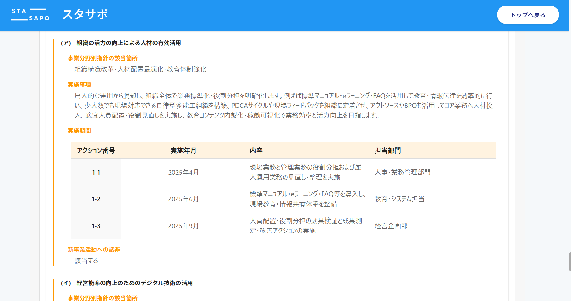 本機能は今回のリリース以降も、全ての顧客が求める完成形を自動生成可能とするため、ユーザーの皆様からのフィードバックや、補助金制度・計画書様式の変更等に対応しながら、継続的な品質改善・機能拡充を行ってまいります。