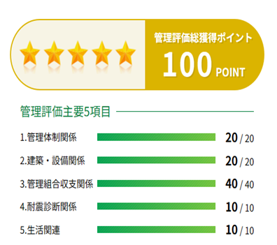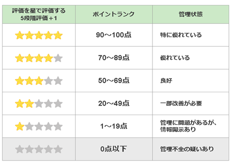 こうした課題に対処するため、マンション管理業協会では、適切に管理されているマンションが市場で評価される仕組みとして、全国共通の管理に関わる評価基準を策定。マンションの管理状態や管理組合の運営状態を6段階で評価し、インターネットを通じて情報を公開する「マンション管理適正評価制度」を、2022年4月に創設しました。