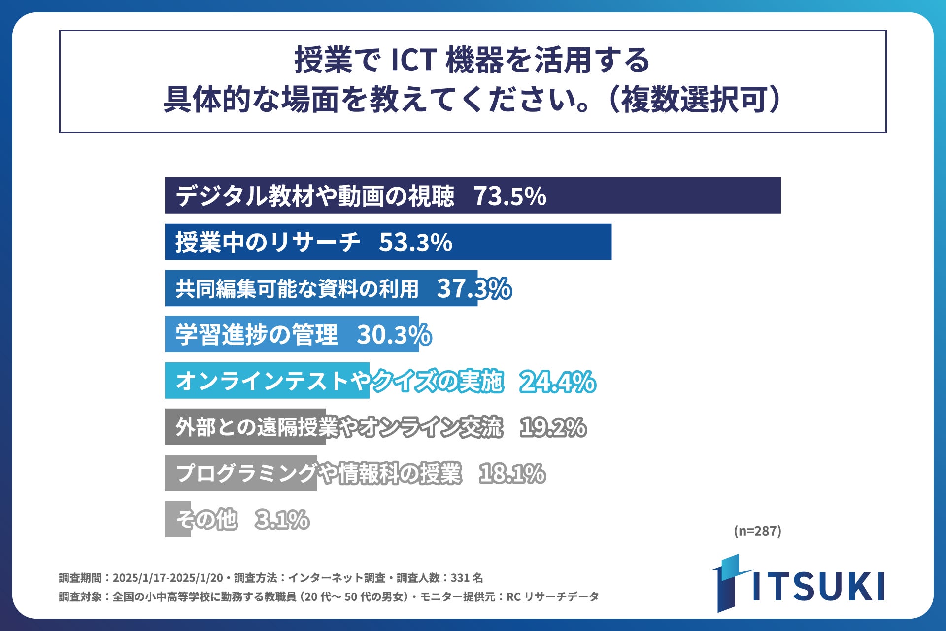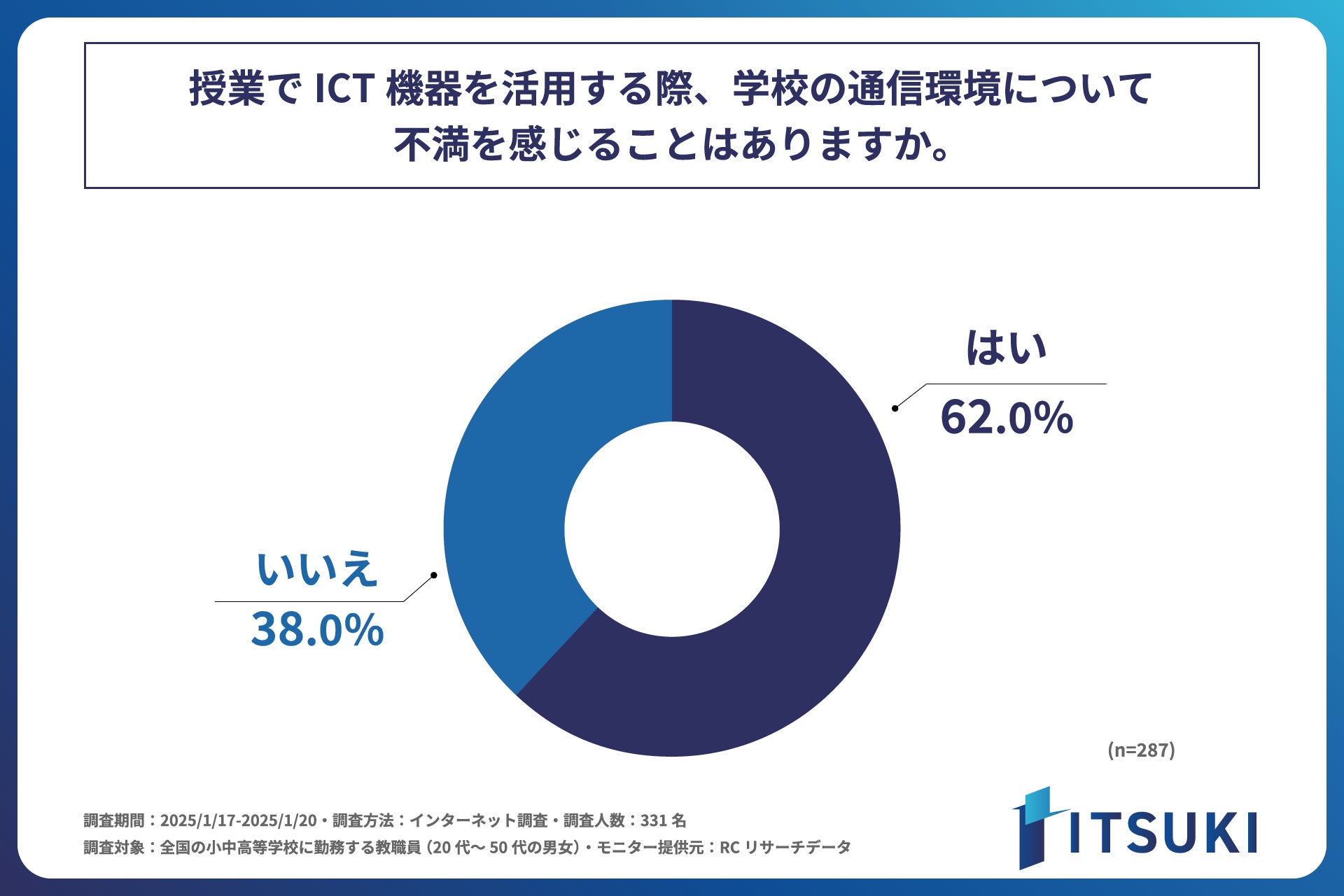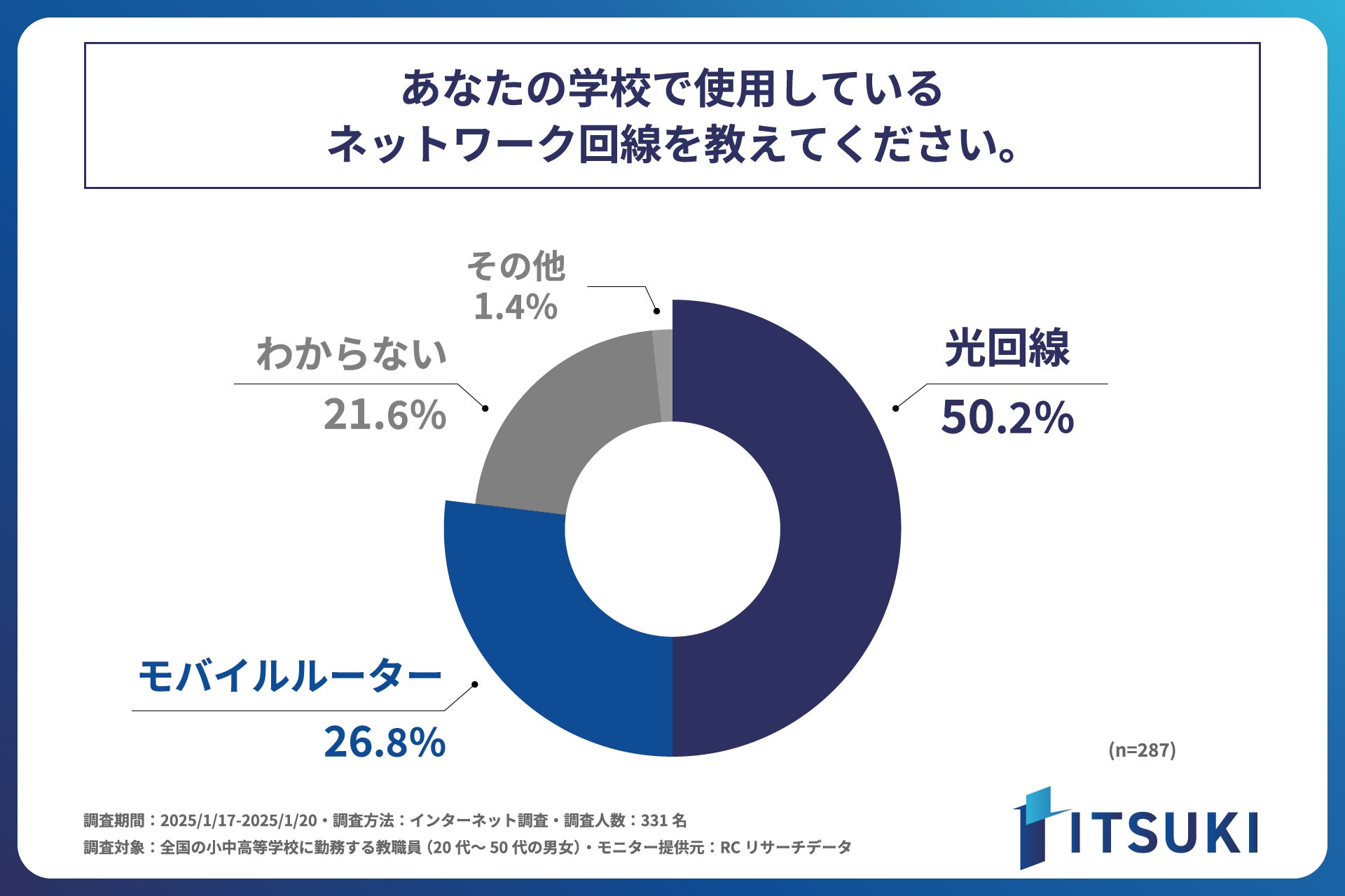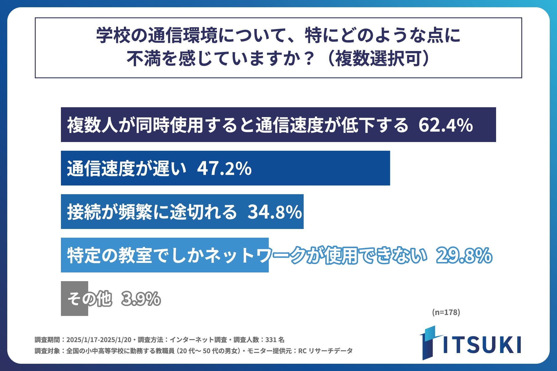 小中高等学校の教職員として働く人の6割以上が、学校の通信環境に不満を感じている!株式会社ITSUKIが、「学校現場におけるICT活用と通信環境の実態調査」を実施!