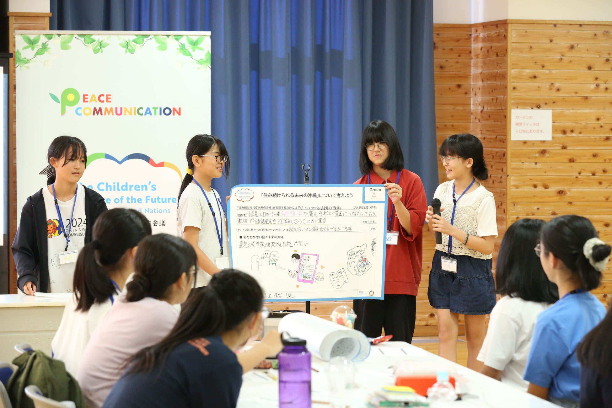 国連を支える世界こども未来会議は、2019 年に東京オリンピック・パラリンピック公認プログラムとしてスタートしました。現在は、こども家庭庁・外務省・東京都から後援をいただき、2023 年 2 月に国連よりタイトルの認定を受け、展開しています。本イベントは世界のこどもたちが集まり、SDGs を軸に平和で豊かな世界について語り合うピースコミュニケーションの場として毎年開催し、2022 年度より国内展開もスタートしました。沖縄での開催は3回目となります。