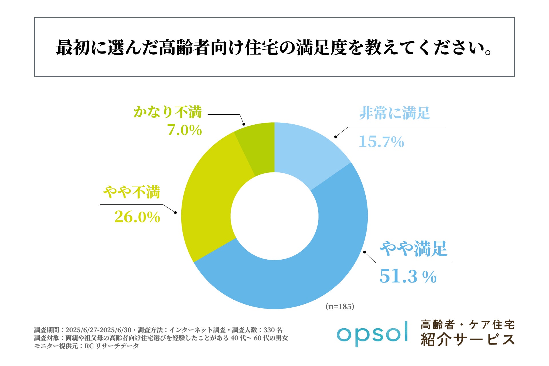 両親や祖父母の最初の高齢者向け住宅を自分で探して選んだ人の約65%が、選んだ高齢者向け住宅に少なからず満足している