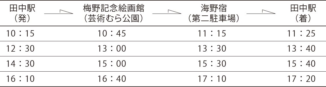 ※10月12日(土)、10月13日(日)は芸術むら公園で「火のアートフェスティバル」が開催され、終日、田中駅ー芸術むら公園をつなぐシャトルバスがピストン運行されます