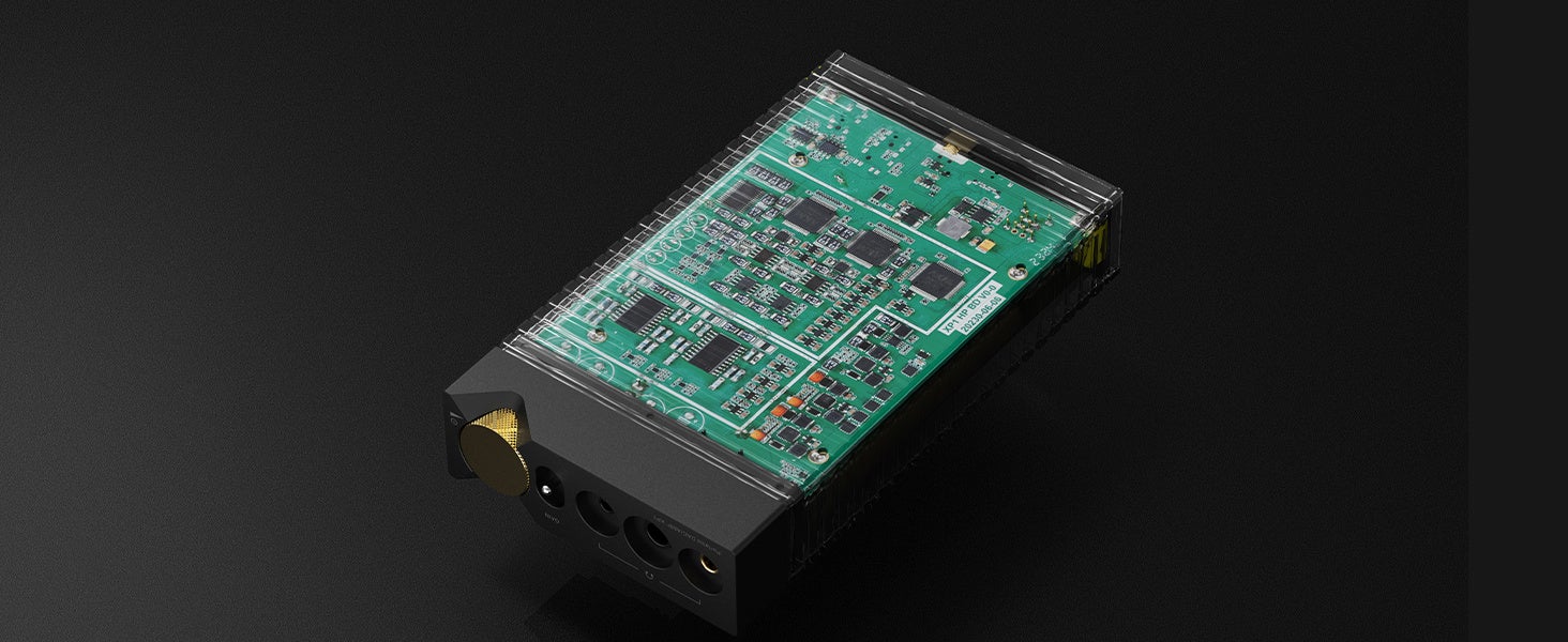 後段の増幅部には、フラッグシップデバイスに相応しく、フルサイズのヘッドホンの最高のパフォーマンスを発揮できるよう最適化・調整されたアンプ回路を搭載しています。