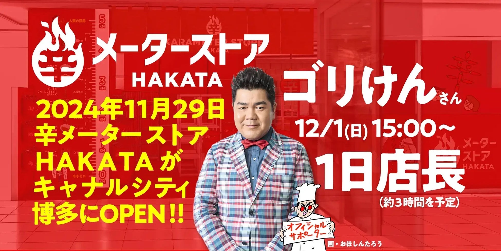 【「辛メーターストアHAKATA」OPEN記念イベント】 12/1(日)はゴリけんさんが1日店長に就任決定!