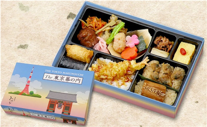 上の画像【The東京幕の内】は、そんな「江戸東京」にちなみ、江戸前料理の代表天ぷらを載せた「海老天丼」、江戸の歌舞伎をイメージした稲荷と干瓢巻きの「助六寿司」、あさり入りの「深川めし」のほか、「穴子めし」も盛り込んだほか、黒毛和牛旨煮や人気の煮物など、バラエティ豊かななお料理も入った、ちょっぴり贅沢なお弁当です!
