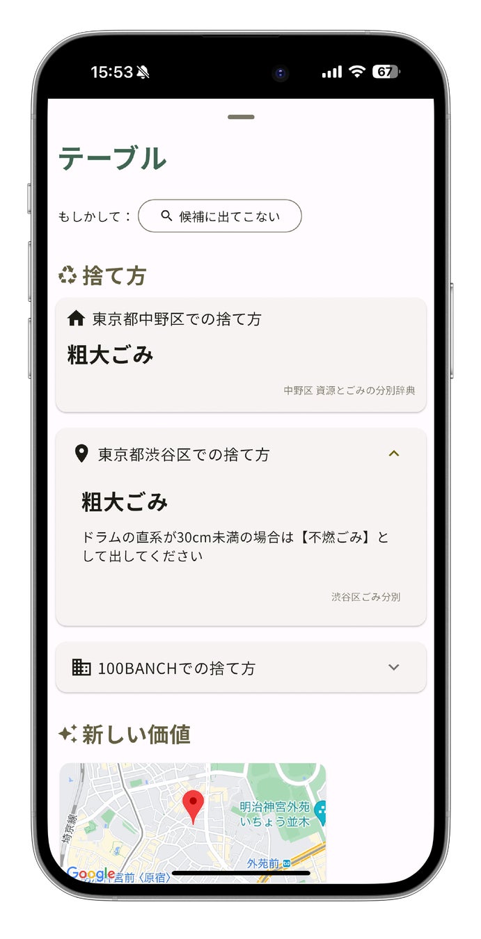 「これって他の人には価値があるのでは?売れるかも!」という意識は必要なく、「これってどうやって捨てるの?」という利用者の疑問にパッと答えます。同時に、AIが画像から検出した特徴をもとに、リユースやアップサイクルを行う人々を提示します。モノが持つ資源としての価値を最大化するだけでなく、利用者にとっても満足度の高い手放し方を提案します。
