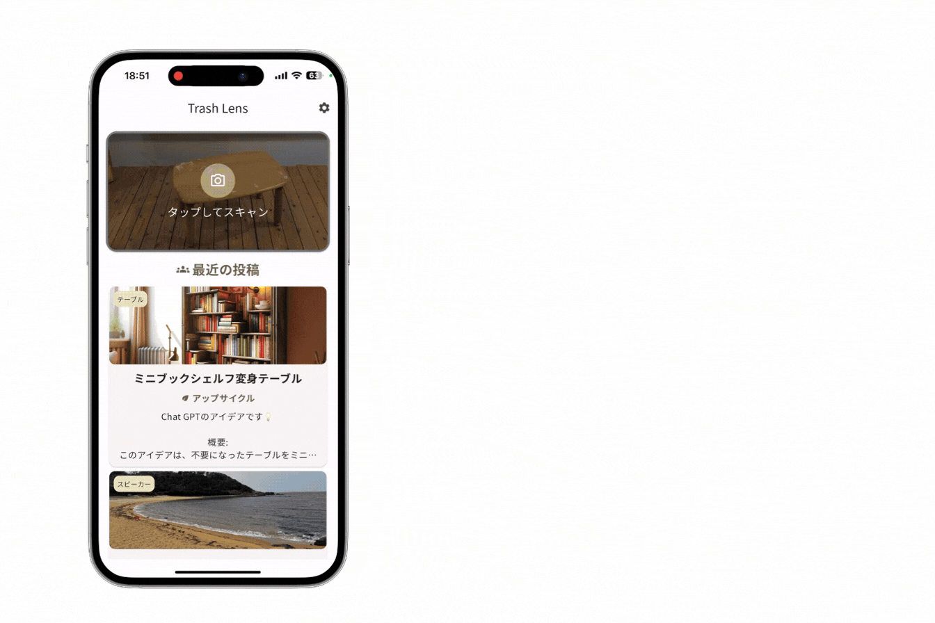 Trash Lensは誰もが意識することなくより良い資源活用を行える社会の実現を目指し、手放すモノをパッと撮るだけで価値を最大化する仕組みを構想し、開発しました。