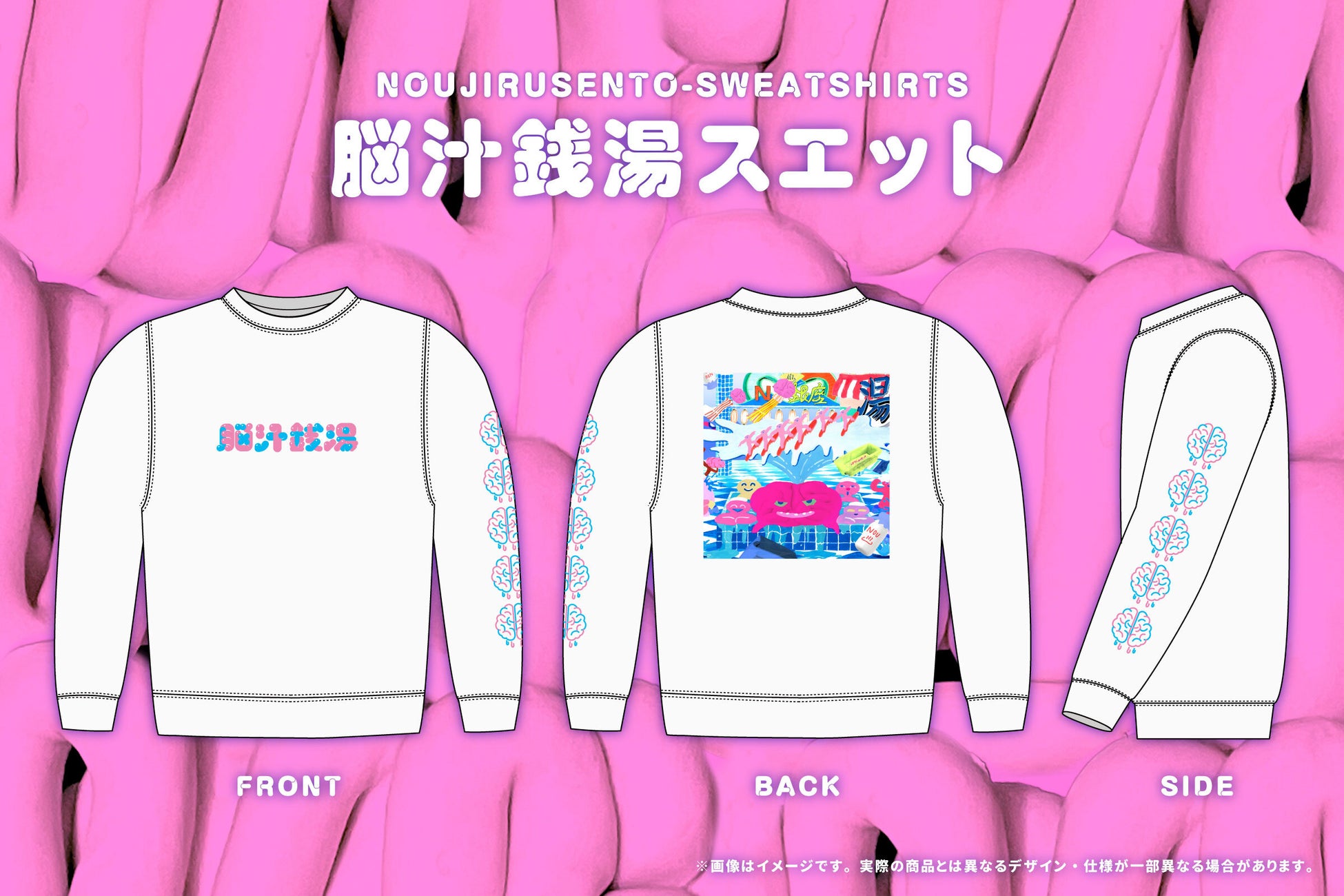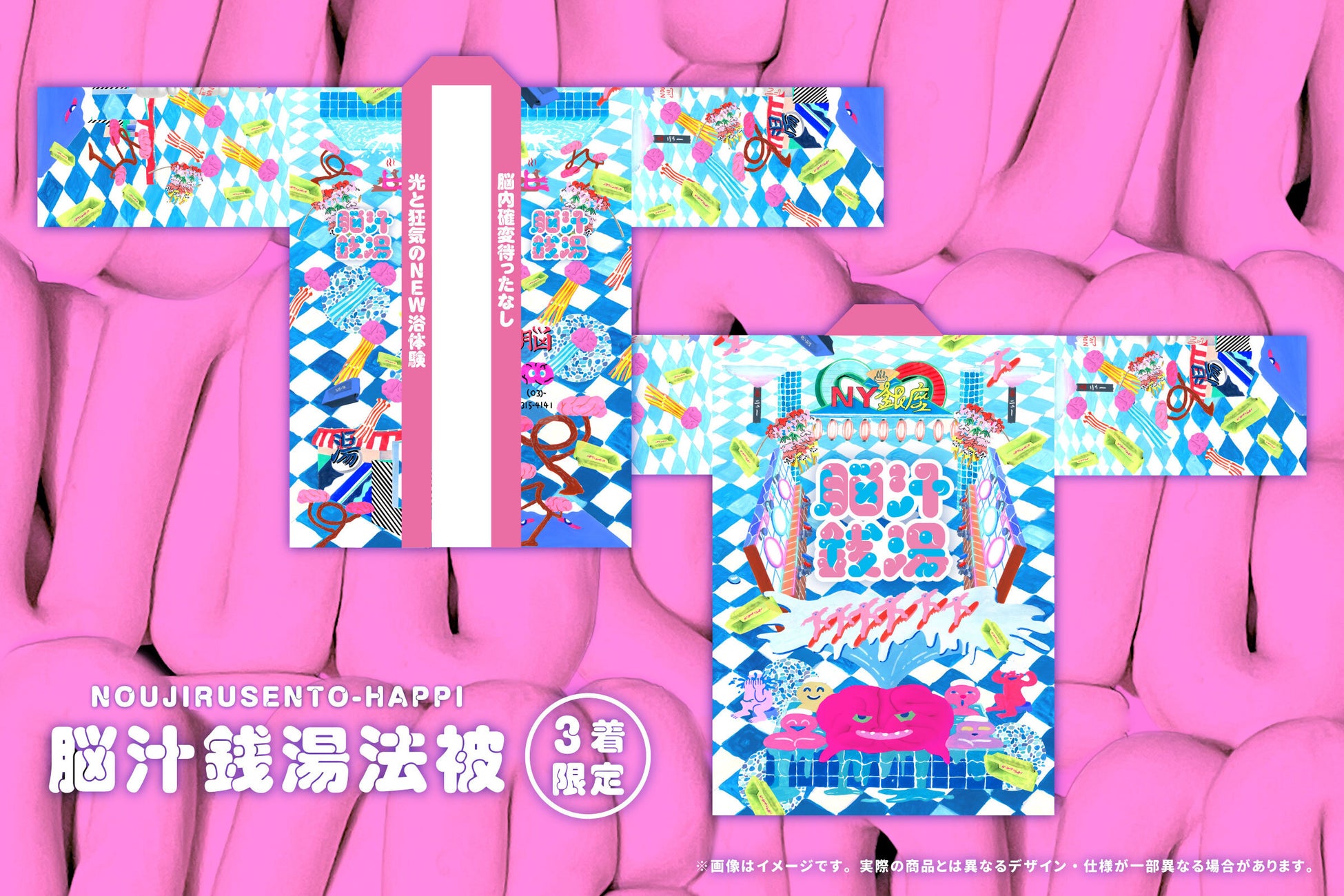 「最後の手段」デザインの脳汁銭湯ビジュアルを全面にプリントしたインパクト抜群のデザイン。3着限定販売の超プレミアムアイテム。
