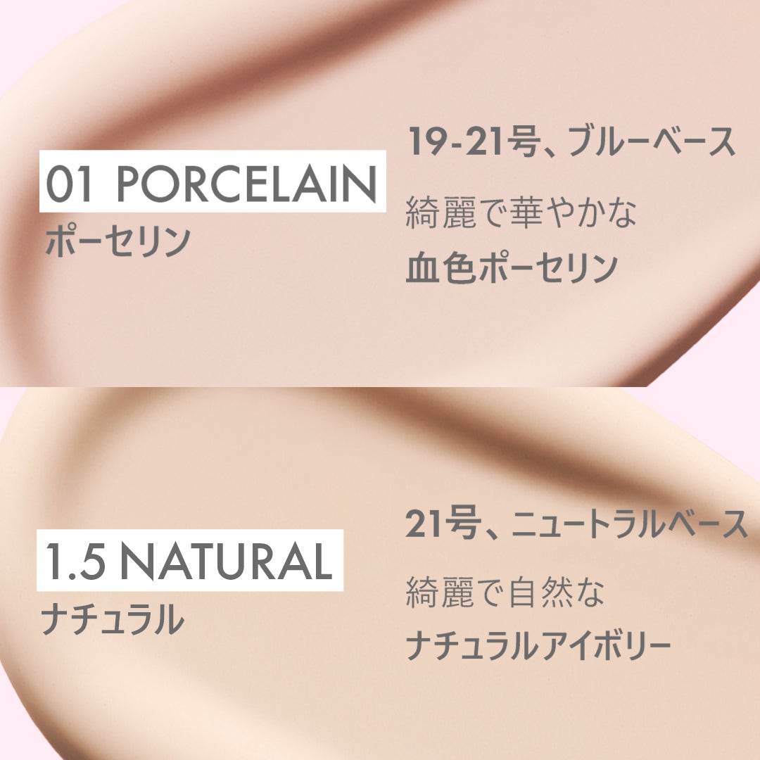 「セラミッククッション」は、軽やかで肌に密着しやすい超スリムテクスチャーが特徴。毛穴レスなセミマット肌を演出し、まるで陶器のようななめらかさを実現します。今回はパッケージと付属のパフまでリボンモチーフをあしらった特別仕様で乙女心をくすぐるデザインに。