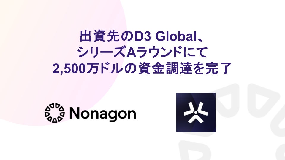 Nonagon Capitalがシードラウンドで出資したD3 Global、シリーズAラウンドにて約39億円(2,500万ドル)の資金調達を完了