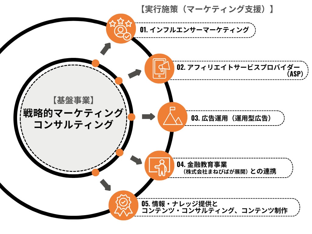 そこで、当社はこれまで多くの金融・投資関連企業を支援させていただく中で蓄積してきた知見・ノウハウを活かし、より戦略的で包括的なマーケティングコンサルティングを提供することで、金融・投資関連企業の持続的成長をより強力に支援させていただくこととしました。