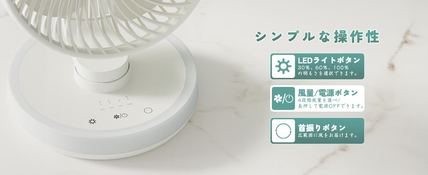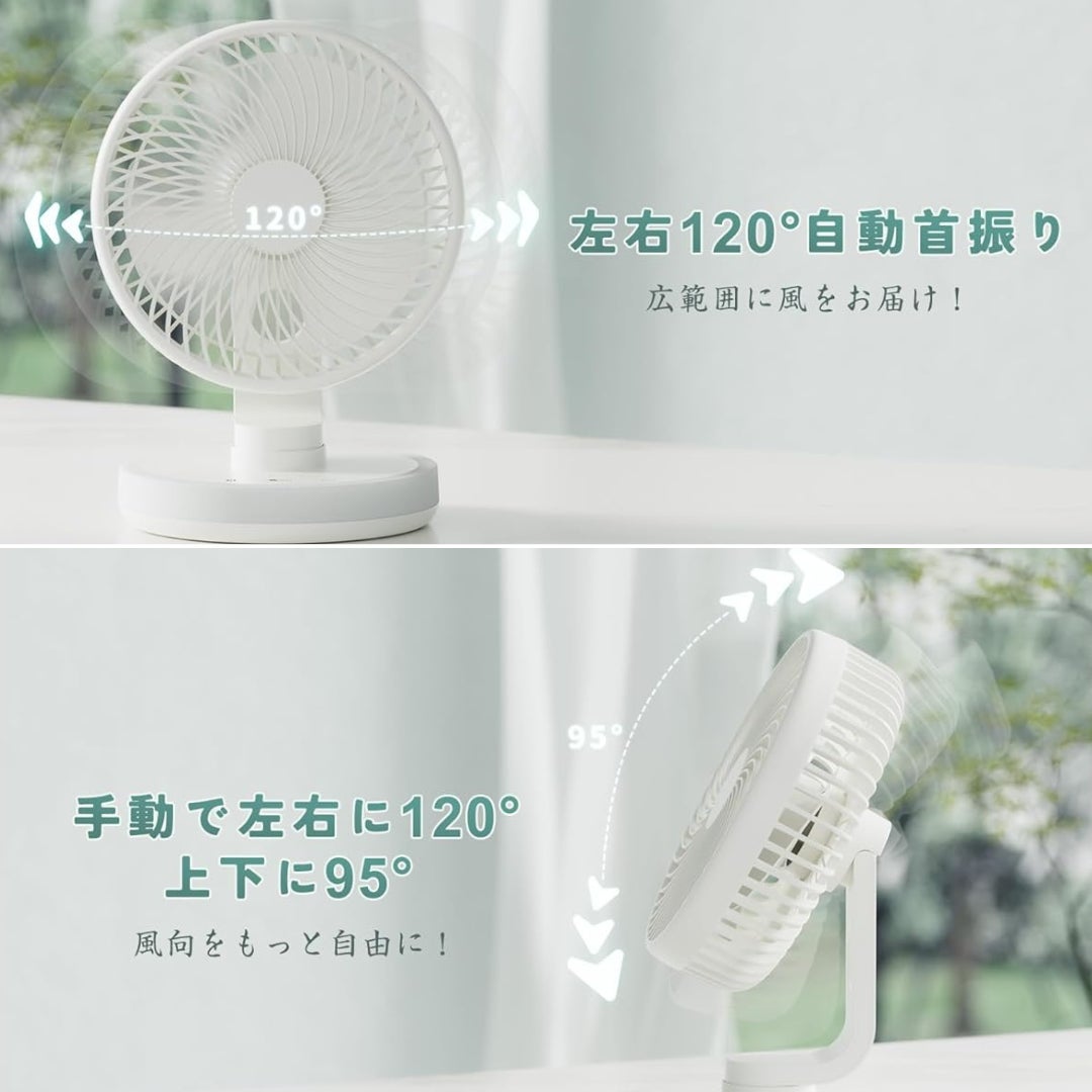 【長時間のデスクワークに】20時間連続使用可能な大容量バッテリー搭載し、首振り機能と3段階風量調節で、集中を持続させる最適な環境をキープします。パソコン作業や勉強の効率アップをサポート。