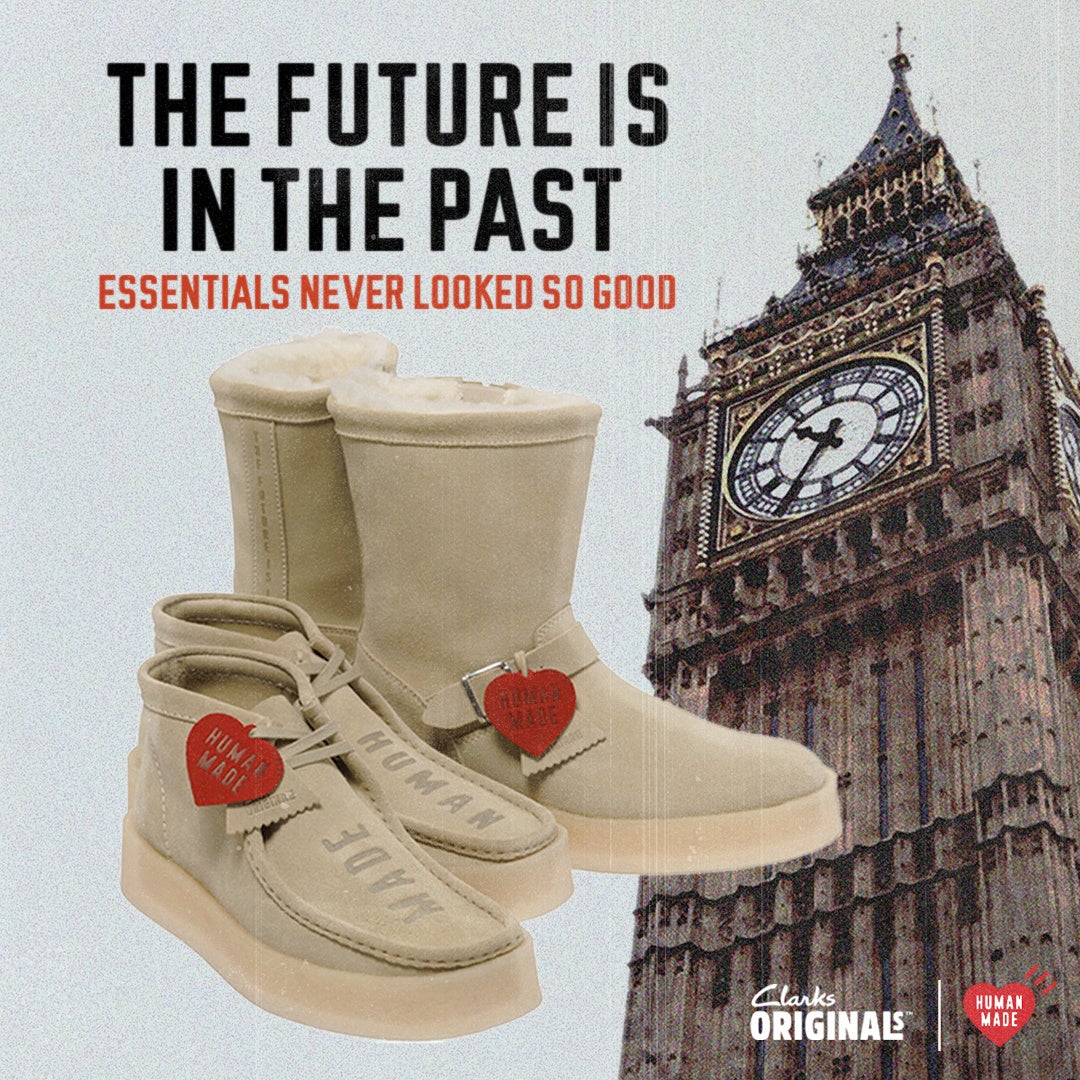 HUMAN MADEのブランドコンセプト"The Future is in the Past(未来と過去の融合)"をテーマとした、WallabeeとDesert Bootを独自のシルエットとデザインで仕上げました。