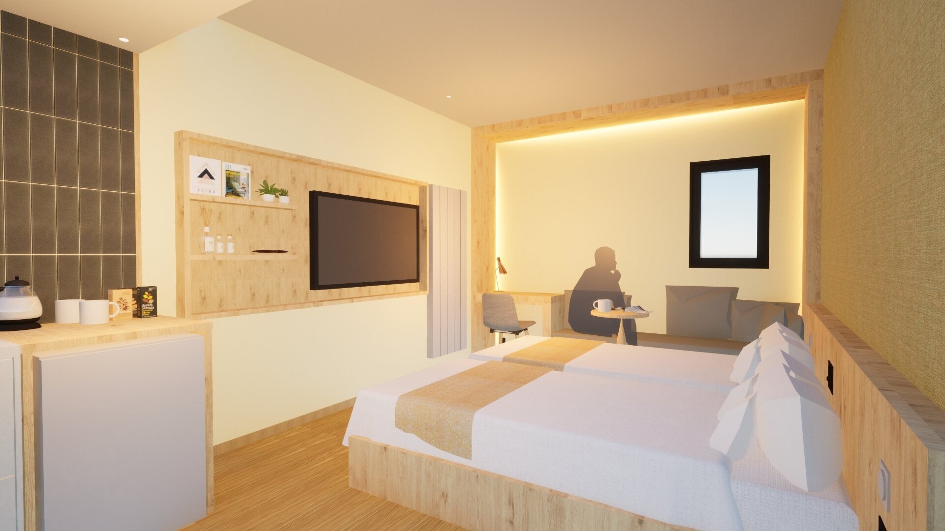 トナリゾートが提案するのは「スマートリゾート」という新しい形。フロントで並ぶことも、照明のスイッチを探すことも必要ありません。スマート家電やIoTの技術を掛け合わせ、一つひとつは小さいけれど、宿泊者を煩わす手間や無駄を徹底的に削ぎ落とす。まさに、利便性と機能性を追求した次世代型のホテルです。