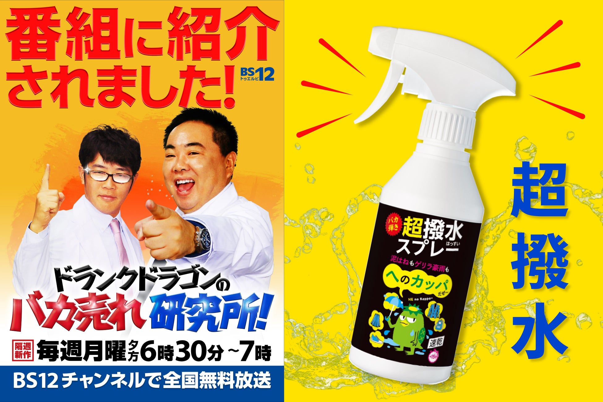ヒット商品発掘バラエティ「ドランクドラゴンのバカ売れ研究所」放送記念!!プロ仕様の撥水力を実現した異次元性能の撥水スプレー「へのカッパ超撥水スプレー」39%OFFセール実施中