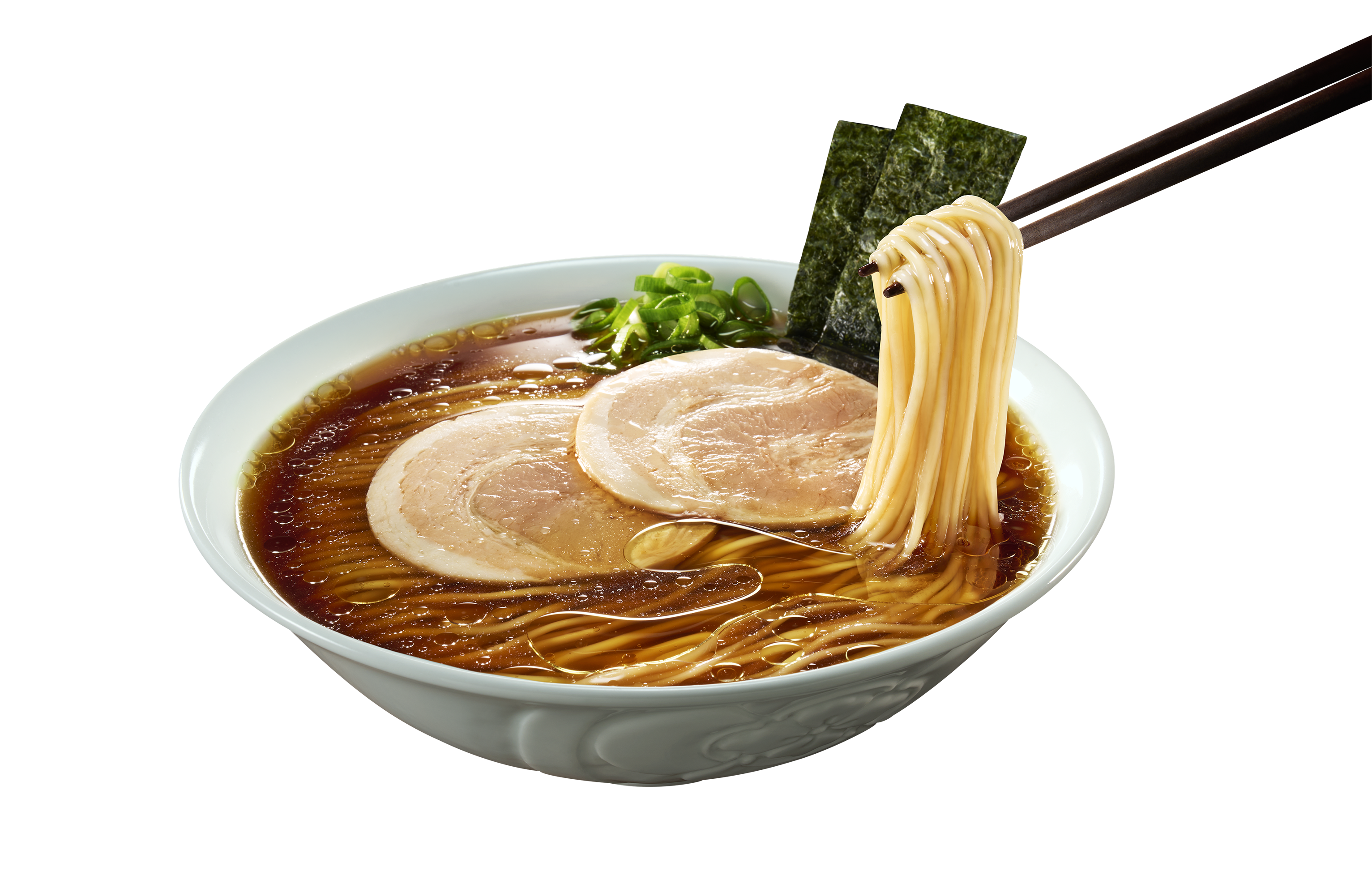 <スープ>鶏・豚・魚介の素材の旨味・甘みを引き出し、厳選した醤油を合わせた芳醇醤油味です。