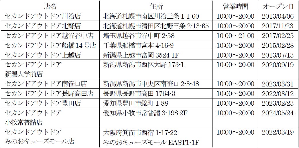 ■セカンドアウトドア店舗一覧