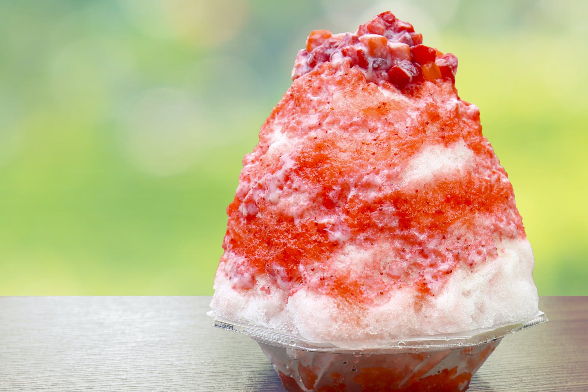 出来立てはシャリシャリの本格かき氷の食感を、少し時間がたつと氷が溶け出してストローでかき混ぜれば、味のバランスも絶妙になり最後まで飽きずにお楽しみいただけます!
