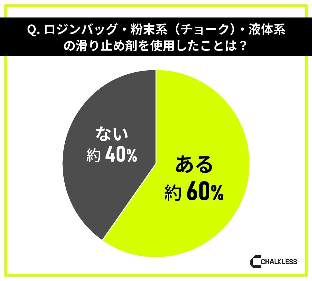 続いてソフトボールをプレイしているときにロジンバッグやチョーク系などの滑り止めを使用したことがあるかを質問しました。