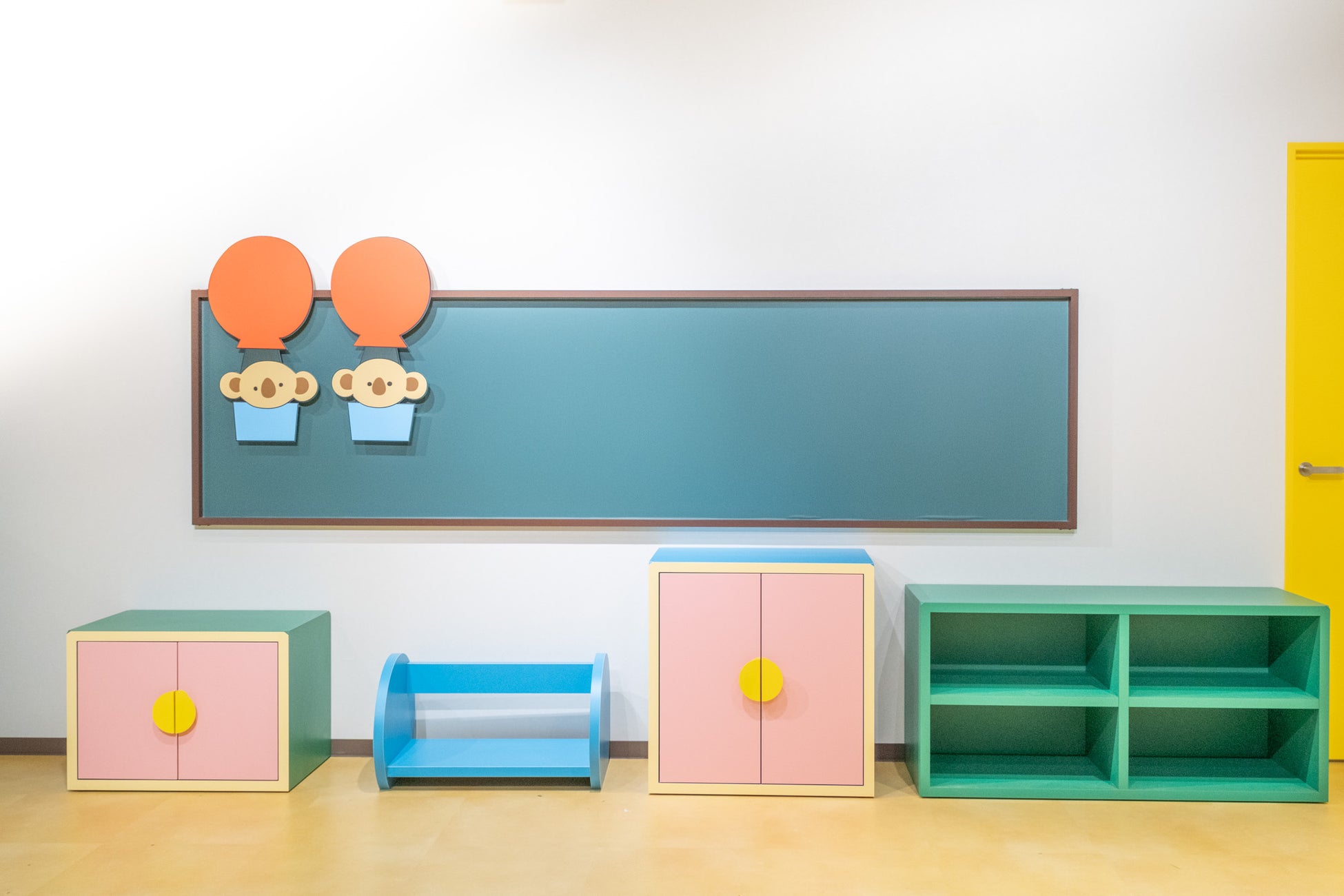 しんちゃんを始めシロやカスカベ防衛隊のみんなの立体像や、スイーツ満載のポップでカラフルな壁紙、しんちゃんのお気に入りのおもちゃがモチーフの棚やお友達テーマの棚と、見ているだけで楽しい空間になっています。