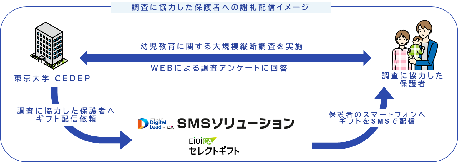 東京大学での「幼児教育に関する大規模縦断調査」をNTTタウンページ・NTTカードソリューションがSMSと電子マネーギフトで支援