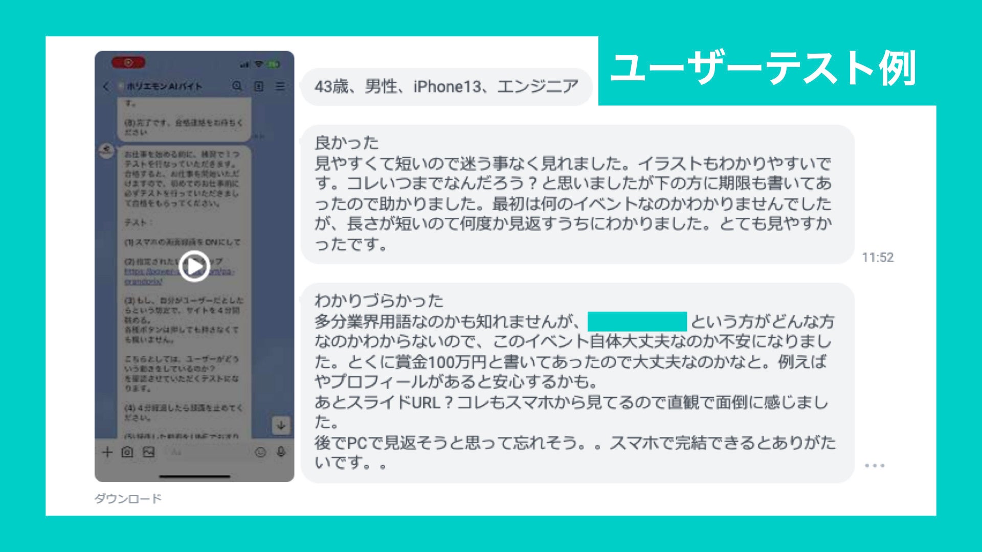 その他、一般ユーザーにスマホでテストしてフィードバックを得たい企業さまは、お気軽にご相談ください。チェック項目なども柔軟に対応できます。