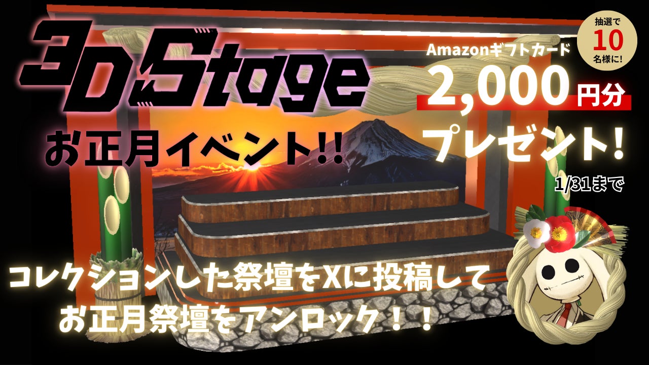 ご購入いただいたお正月しめ縄をV-tampのバーチャル祭壇に飾り、X(旧Twitter)にてハッシュタグ「#お正月祭壇」を付けてご投稿いただくと、参加者全員にお正月仕様の特別な3Dバーチャル祭壇をプレゼントいたします。