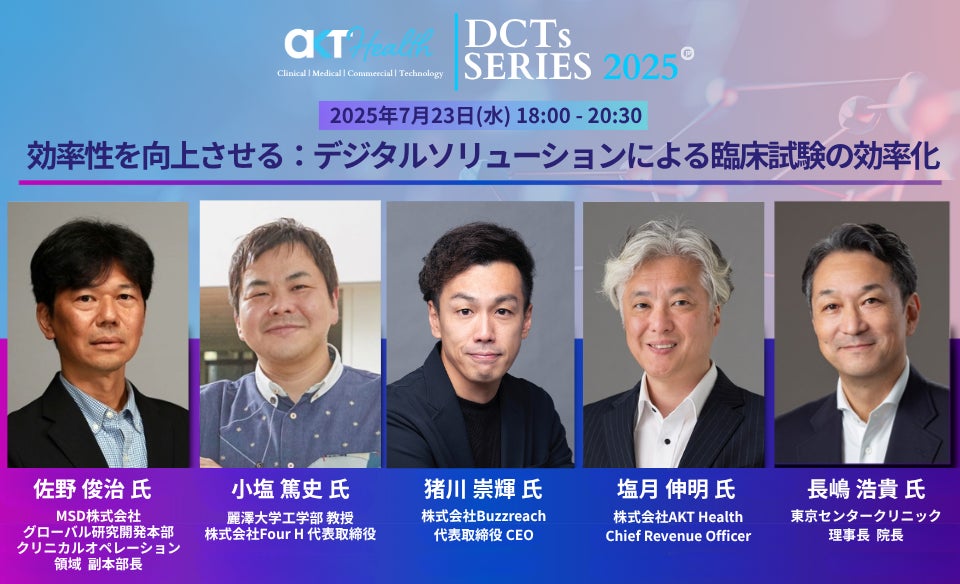 株式会社AKT HealthはメディカルITプロバイダーとして、医療機関、アカデミア、各企業のDCTに携わる方々と連携してこれらの課題に取り組むべく、この度「DCTs Series」イベントを企画いたしました。
