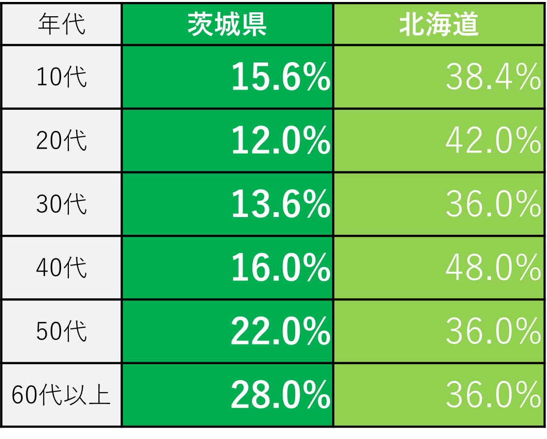 また、世代別の認知度においても、北海道とは大きな差を開けられ、特に若年層における差が顕著であることがわかりました。