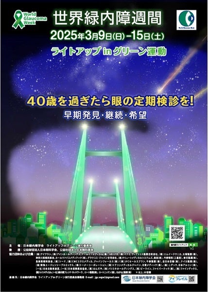 日本緑内障学会によると、日本の視覚障害の原因疾患1位は「緑内障」で、全体の40.7%に上るそうです(日本緑内障学会HP:Matoba et al JJO2023)。そのため、眼の健康について考えてもらいたいとの思いを込め、世界緑内障週間(3/9~3/15)の間、「ライトアップinグリーン運動」と題して国内のランドマーク施設や医療機関などを緑内障のシンボルカラーの緑にライトアップする取り組みが始められました。