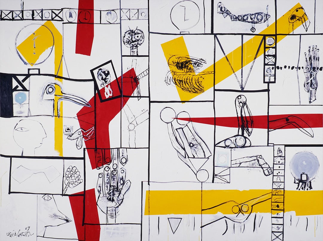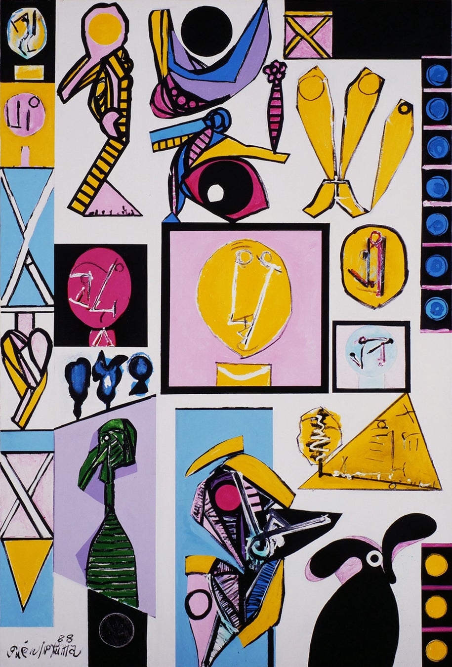 1988年 妻、文子を亡くす。作品に顔や動物たちも描かれ、多様な形が共存するようになる。