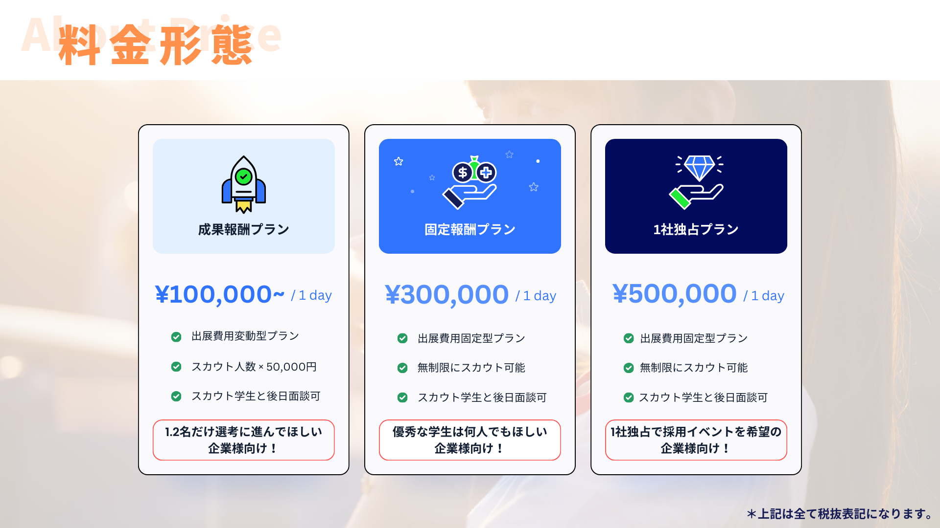 また、1社限定で開催する場合は、参加対象団体を『学歴』『地域』『活動内容』などのセグメントに限定して、開催することが可能です。
