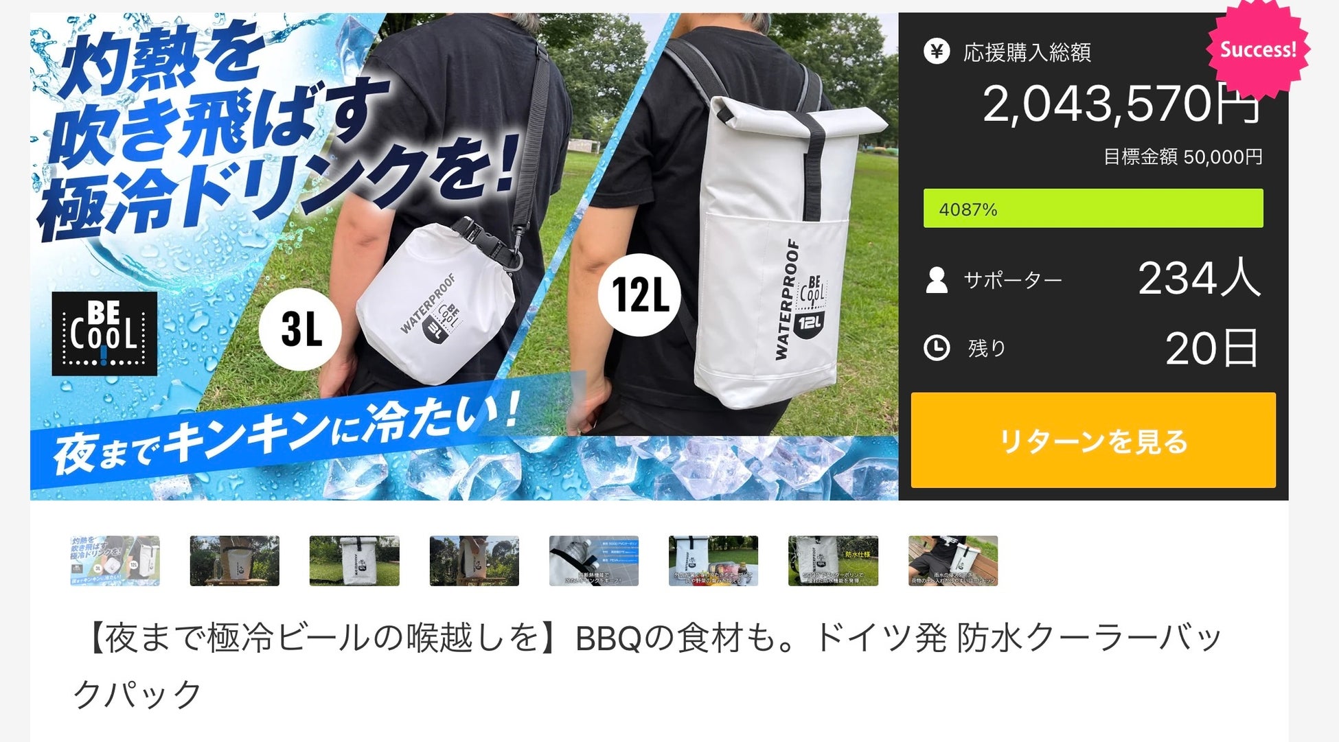 Makuakeクラウドファンディングで目標金額を30分で達成した保冷防水バッグ