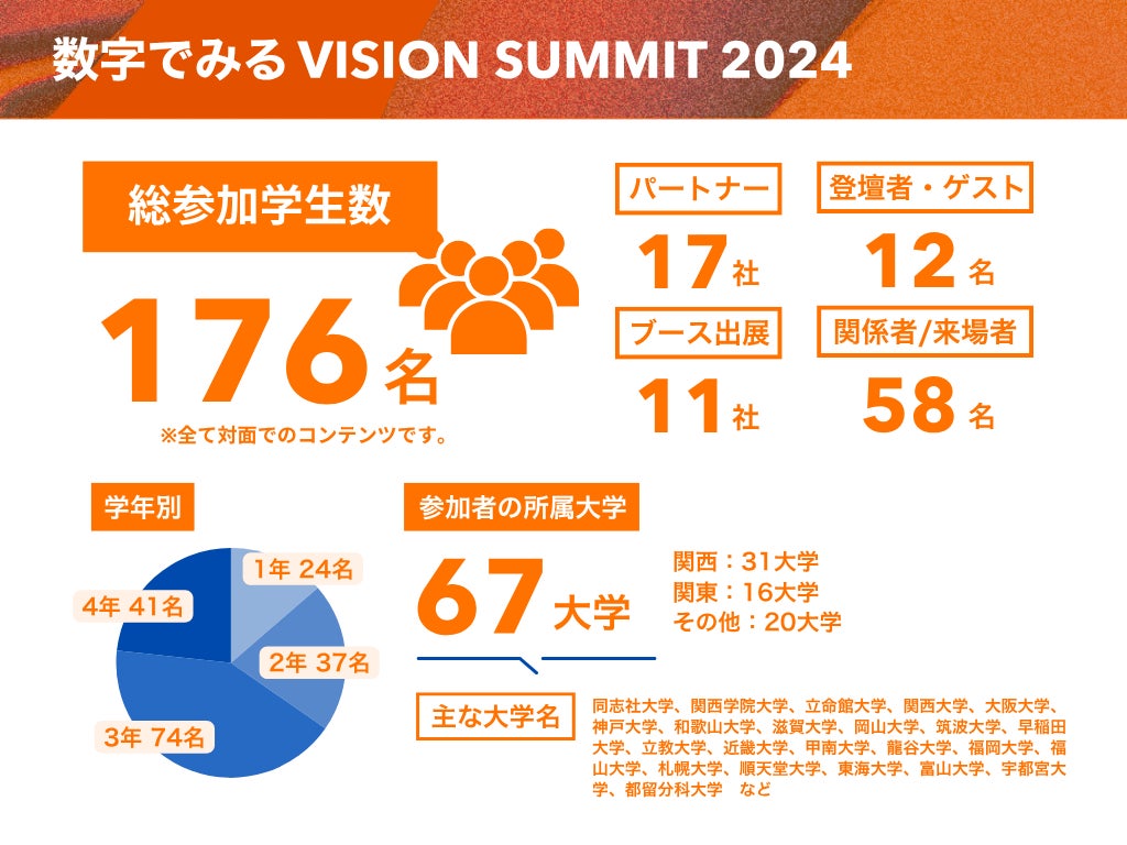 昨年度開催したVISION SUMMIT 2024では176名、これまで3回の開催で合計739名の体育会学生に参加していただきました。