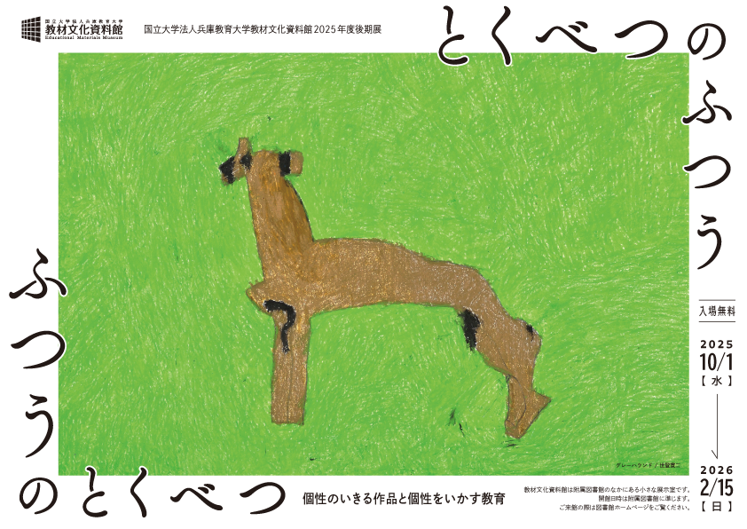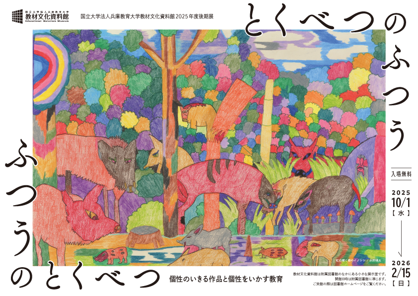 兵庫教育大学教材文化資料館では、2025年10月1日から2026年2月15日まで『ふつうのとくべつ/とくべつのふつう―個性のいきる作品と個性をいかす教育』展を開催しています。
