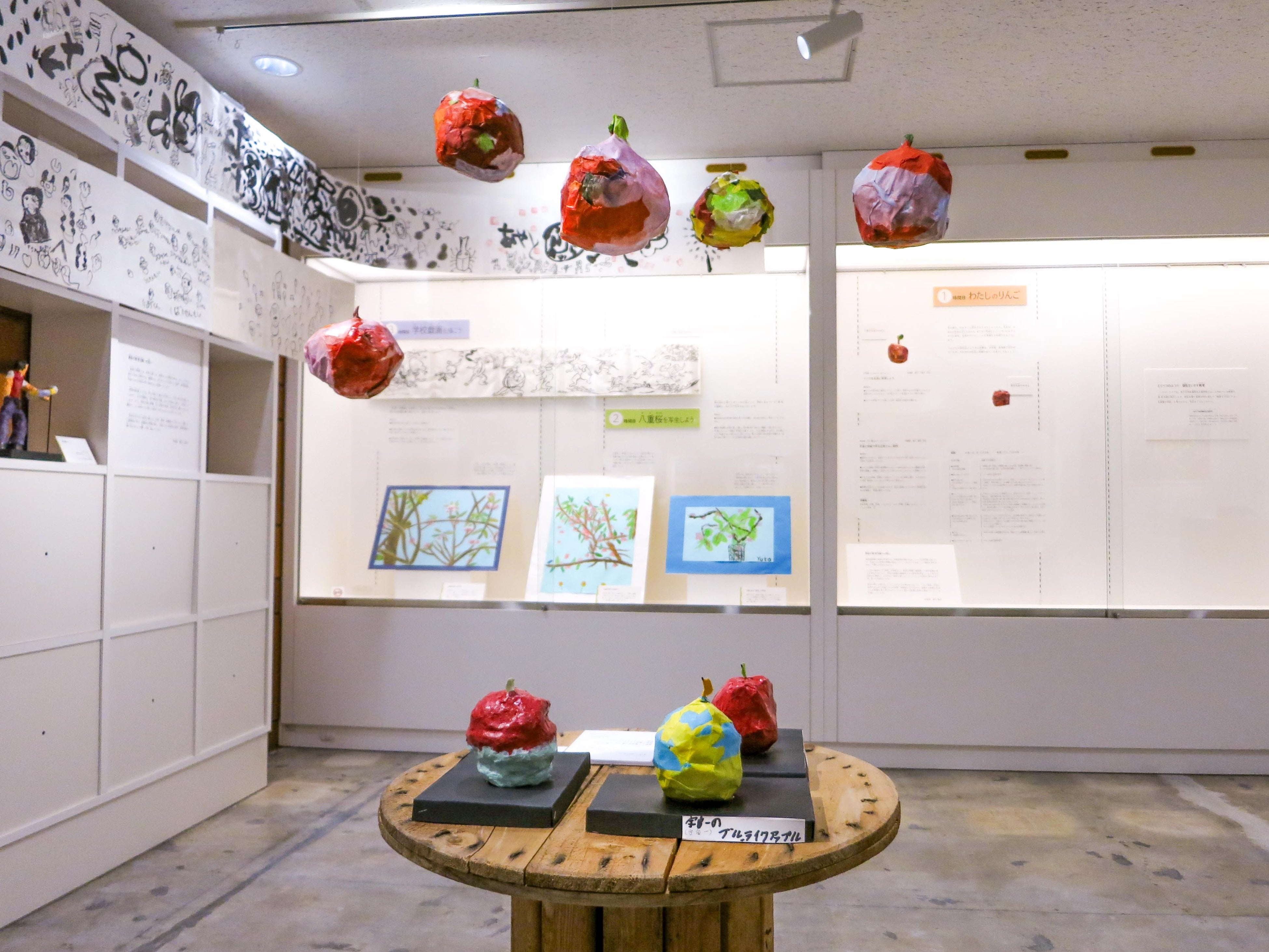 後半のコーナーでは、神戸大学附属特別支援学校で行われる美術の授業案と、生徒たちによる生き生きとした作品が並びます。美術に苦手意識のある生徒が少なくないなか、りんごや八重桜といった身近な題材から始まり、個性を大切にする教育によって自由で楽しい作品が生まれています。それは、特別支援学校に通う「とくべつ」な子どものため、というよりは、どの子も「とくべつ」であるという前提に立った、すべての人のための教育であるように感じられます。特別支援教育の枠を越えて、すべての子どもが安心して学べる学校づくりの手がかりとして、作品と授業のねらいを味わってください。