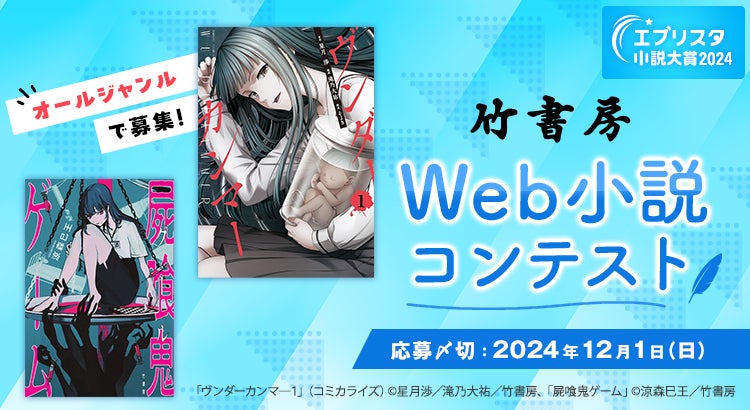株式会社エブリスタ(本社:東京都千代田区、代表取締役社長:安藤晃義)は、自社で運営する小説投稿サイト「エブリスタ」において、竹書房とコラボしたエブリスタ小説大賞2024 「竹書房 Web小説コンテスト」を開催中です! 作品募集期間は2024年9月2日(月) ~ 2024年12月1日(日)。