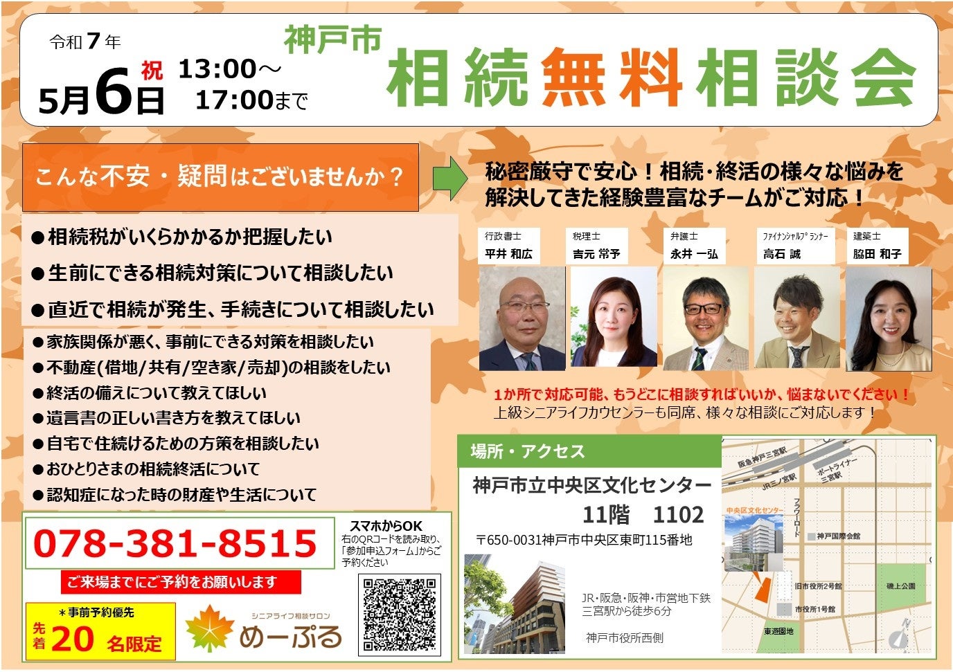神戸市で相続や終活に関する重要なテーマを扱う「相続無料相談会」が、令和7年5月6日(祝)に開催されます。本イベントは、相続の専門家たちが集結し、市民の不安や疑問に直接答える貴重な機会となります。