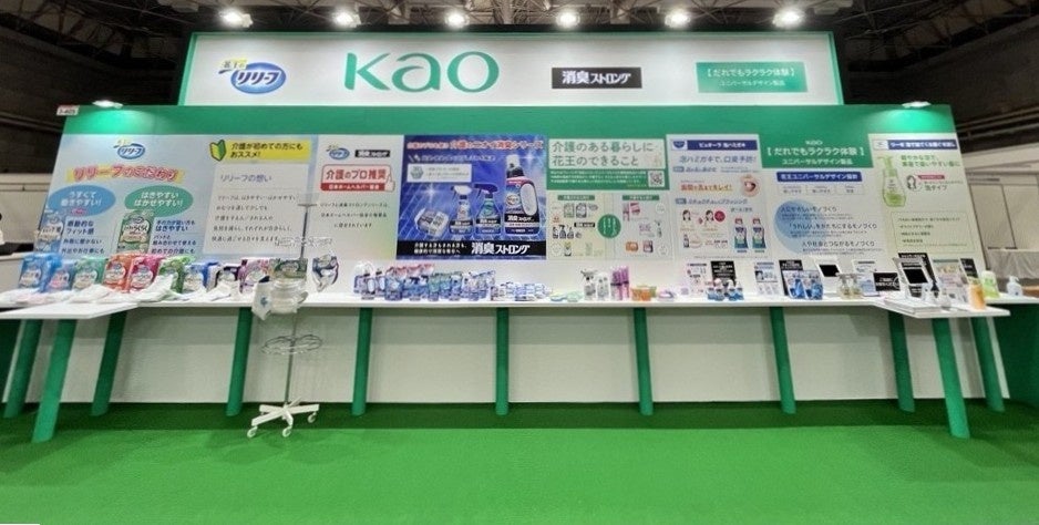 ブースでは「リリーフ」、「消臭ストロング」シリーズのほか、「介護のある暮らしに花王のできること」、「ユニバーサルデザイン体験コーナー」を設け、介護に役立つ商品や誰にでも使いやすいことを目指して開発した自社製品を多数展示しました。