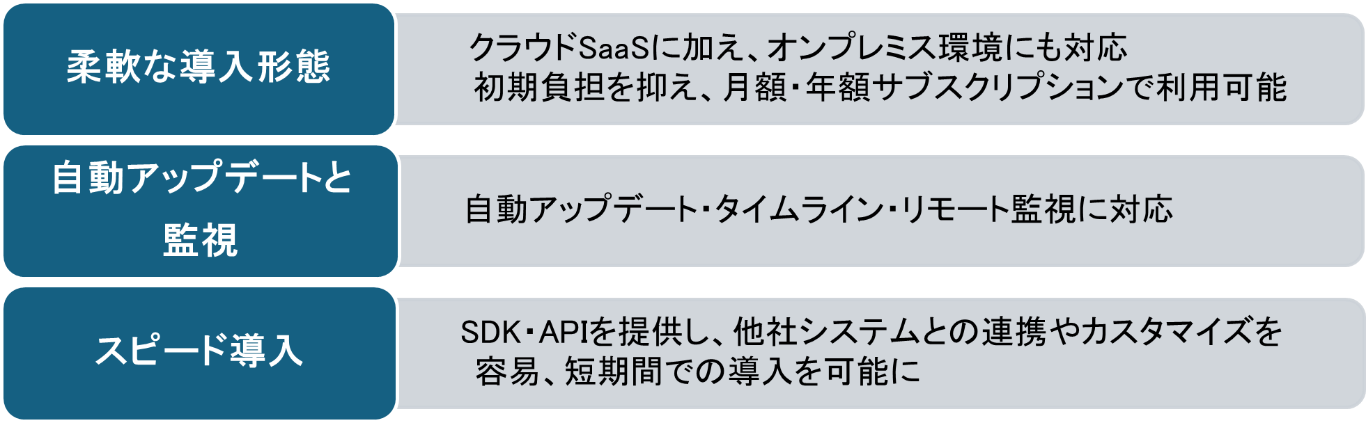 すでに日本では出入管理として採用され(自治体PoC中も含む)、韓国ではKTグループのITサービス企業KTDSが当社APIを採用し、無人店舗向けシステムの開発を完了、現在は商用提案・営業展開中です。