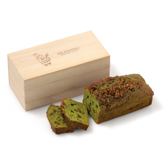 バターをたっぷりと使用したパウンドケーキは、宇治抹茶の濃厚な香りと香ばしい胡桃のサクサクとした食感をお楽しみただけます。エレガントな木箱に入れてご用意いたします。