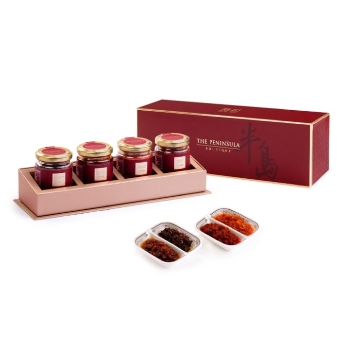 ザ・ペニンシュラのオリジナルグルメソースセレクション。ペニンシュラ香港発祥のXO醬をはじめ、干し海老唐辛子醬や八宝醬、豆板醤の4つのソースを、それぞれミニサイズでお楽しみいただけるギフトセットでご用意。中国料理はもちろん、天心や豆腐など醤油の代わりとしてお楽しみいただけます。こだわりのある方へのギフトに最適です。