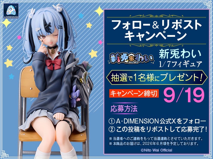 商品化を記念して、抽選で1名様に、『新兎わい 1/7スケールフィギュア』および『新兎わい ぬいぐるみ』をプレゼントする、X(旧Twitter)フォロー&リポストキャンペーンを実施いたします。