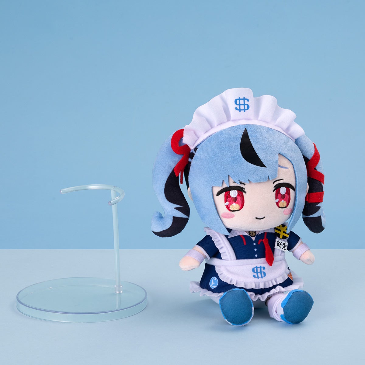 ぬいぐるみは、お座りポーズで自立しますが、付属のABS製特製台座で安定して飾ることもできます。