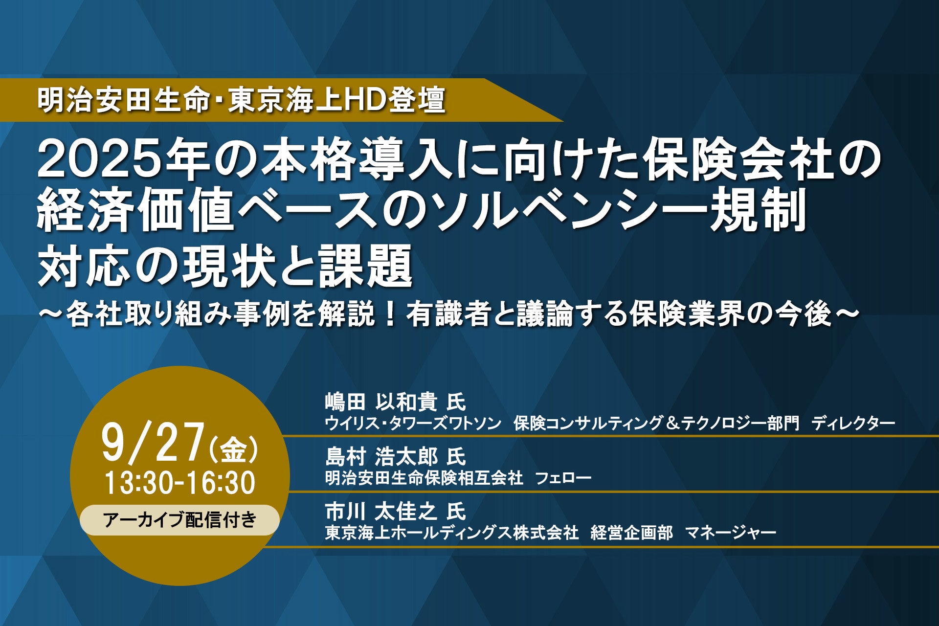 明治安田生命/東京海上HD 登壇!9月27日開催「2025年の本格導入に向けた保険会社の経済価値ベースのソルベンシー規制対応の現状と課題」❘ セミナーインフォ