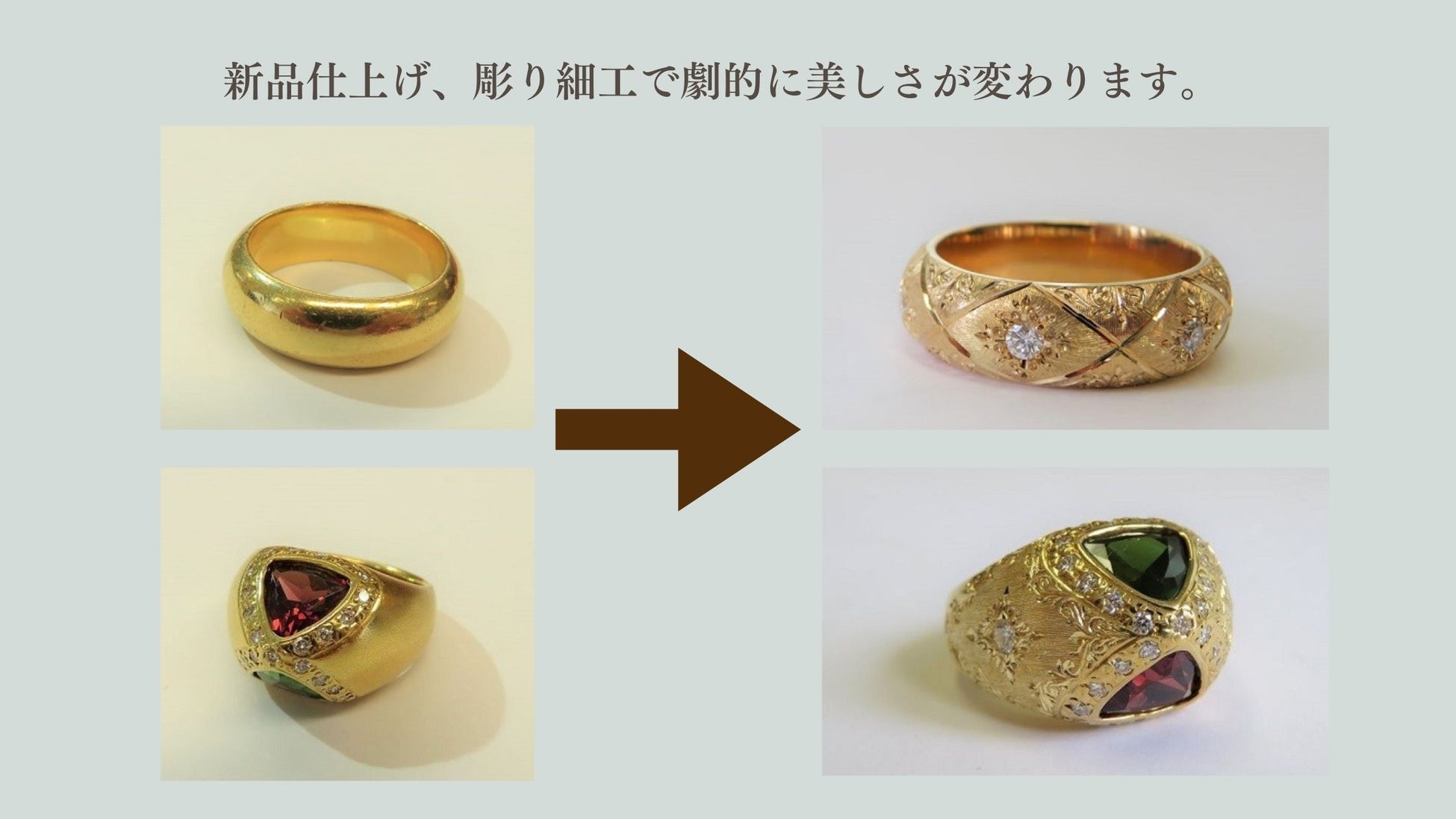 長く使う機会がなっかったリングが、職人の彫り細工で圧巻の芸術作品に蘇ります。