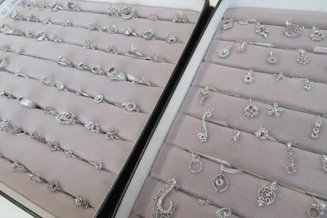 さらに、お手持ちのルースや、当日選んでいただいたルースもこれらの空枠に乗せて、出来上がりをイメージしていただけます。
