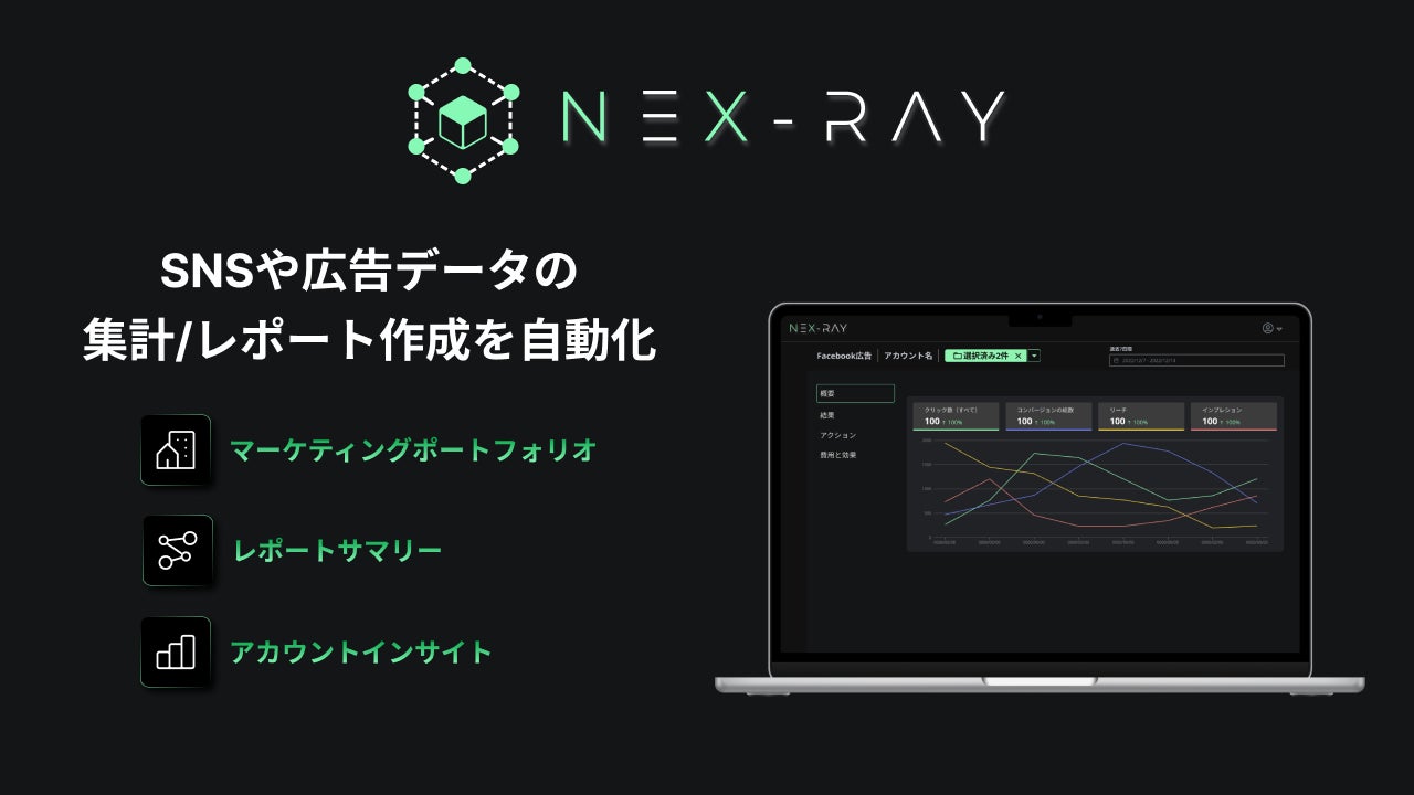 レポート/集計作業を自動化: NeX-Rayは、点在するSNSの統計情報やWeb広告のデータを自動で集計し、煩雑なレポート作成作業をサポートします。これにより、マーケティング担当者は本来の業務に集中することが可能になります。