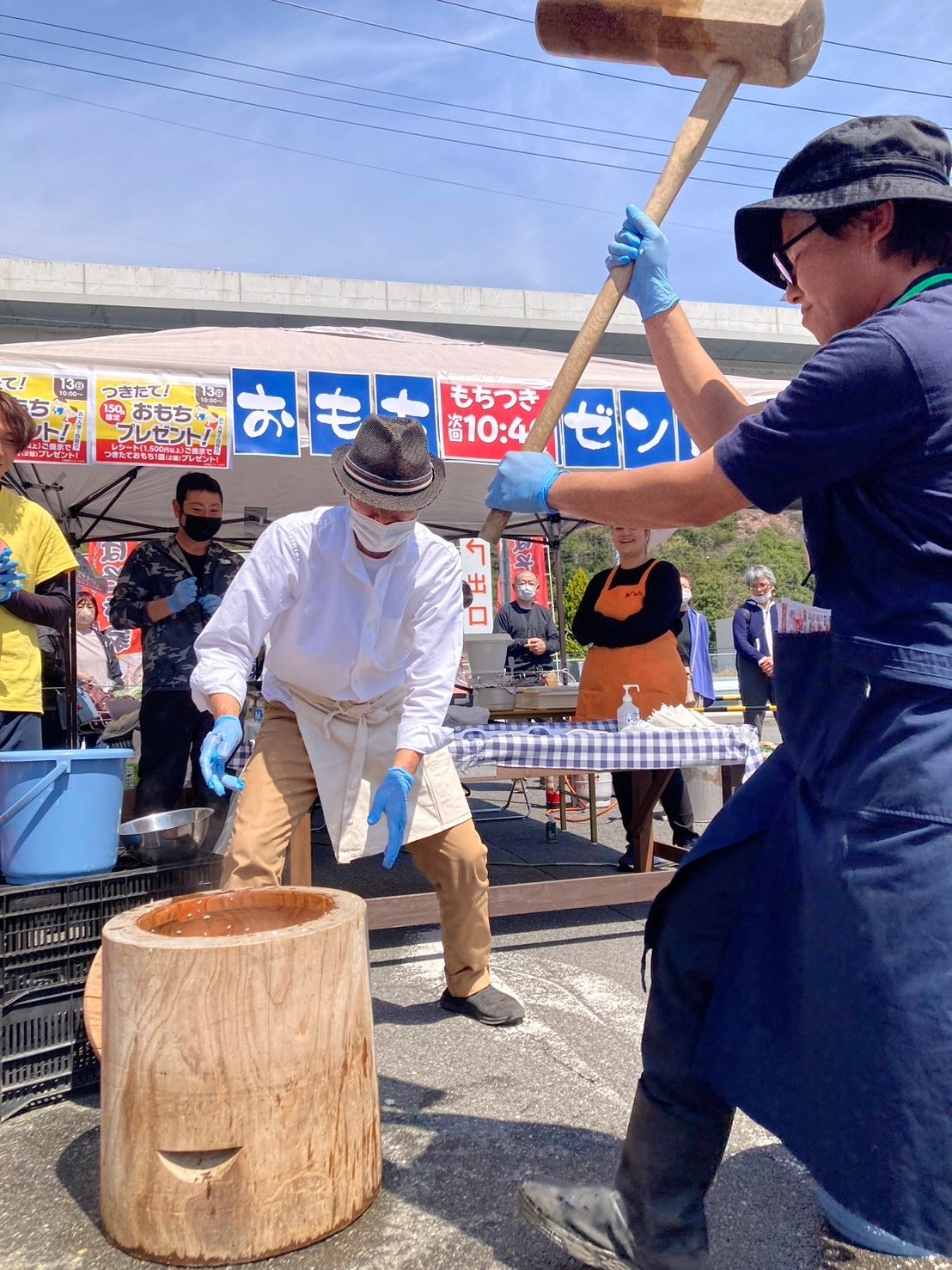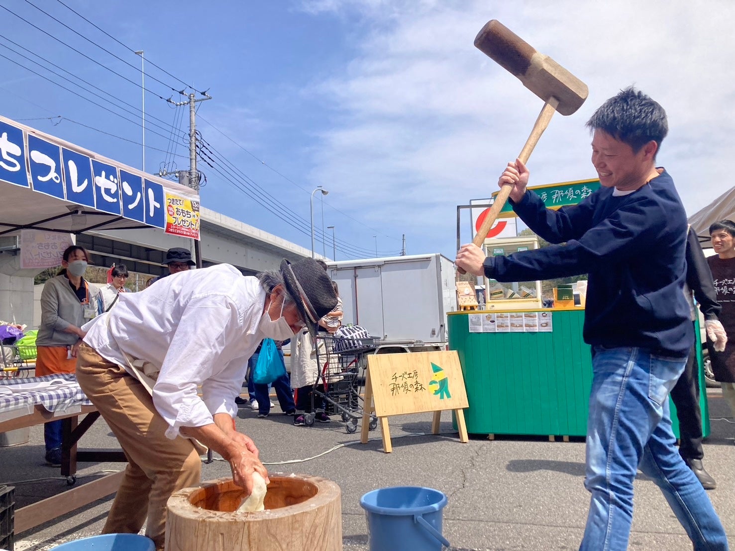 日頃あぜみちに出荷していただいている、生産者さんも参加するもちつき大会を実施。地元の餅米を100%使用し、地元の生産者さんが作る